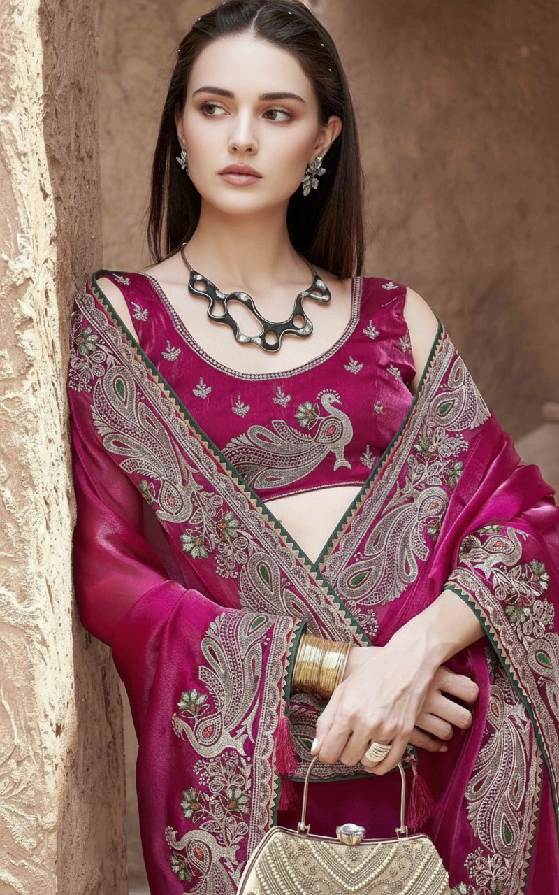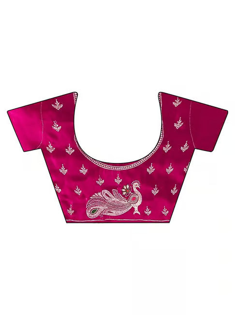 Charming Pink Embroidery Work Silk Saree With Mesmeric Blouse Piece